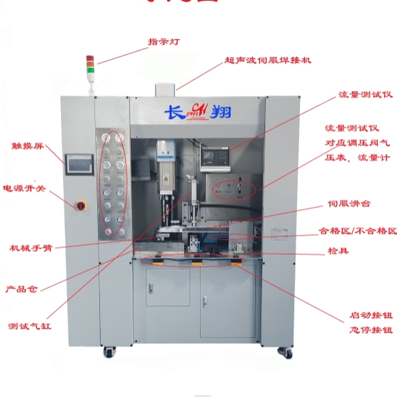 全自動超聲波焊接機:屬于一款根據(jù)產(chǎn)品焊接需求設計超聲波焊接和氣密成品測試一體機,采用伺服超聲波焊接機及空放未檢測或者檢測錯誤不焊接的設備,另加焊接完成后的氣密及流量測試,檢測合格置于合格區(qū)不合格置于不合格區(qū)的一臺多功能集成設備。