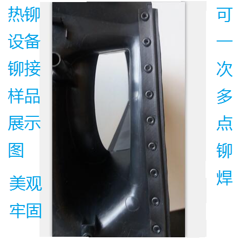 塑料熱鉚機:又稱塑料熱鉚焊接機設備,塑料熱熔機等,屬于一款大型全自動塑料熱鉚熔接設備,本機全自動一次多處同時鉚接,節(jié)約人工節(jié)約生產成本,環(huán)保潔凈,生產效率高,產品一致性好,熱鉚美觀牢固。